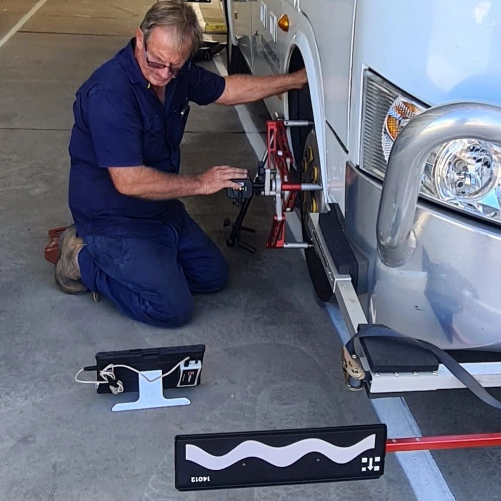 M&M Diesel Repairs are fully Mobile Caravan and Motorhome Wheel alignment Specialist, Servicing Maryborough, Gladstone, Rockhampton, Emerald & Mackay